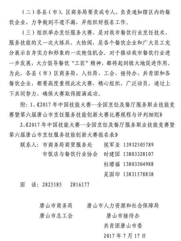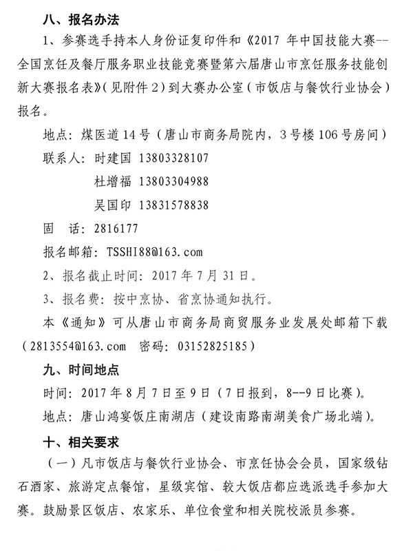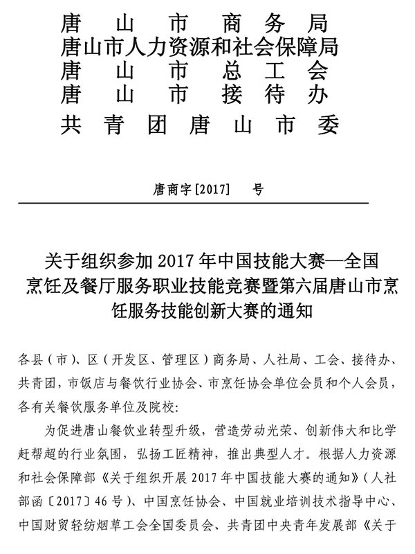 唐山市烹饪协会关于修改第六届《唐山市烹饪协会章程》报告的公示