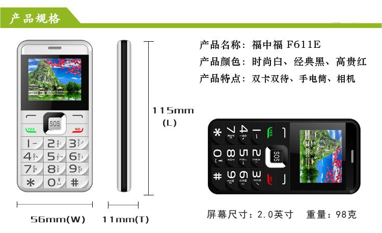 福中福(F-FOOK)F611E老人手机超薄时尚老年手机双卡双待大字大音大键