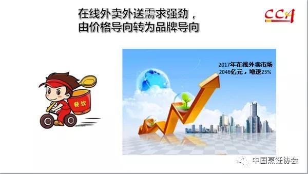 据美团点评研究院发布的《2017年中国外卖发展研究报告》显示,中国在线外卖市场2017年市场规模约为2046亿元,较上一年增长23%,在线订餐用户规模接近3亿人。餐饮外卖外送经过井喷式增长之后,正在步入稳定发展期。2017年,外卖外送是餐饮业变化最大的部分,消费者对于外卖外送的选择开始从价格导向往品牌导向转移,这是一个从量变到质变的过程,这对已有一定品牌知名度的餐饮企业是个好机会。而且,外卖新格局还引入了包括早餐、团餐、下午茶、夜宵等多重场景,满足消费者各时段需求,提供“全天候”餐饮服务。越来越多的餐饮企业,尤其是正餐,都开始研究外卖外送的模式和产品。
