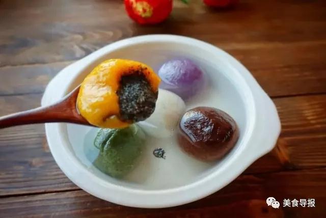 五色汤圆喜庆,卖相极佳,营养价值也高,赏心悦目,更能解馋。