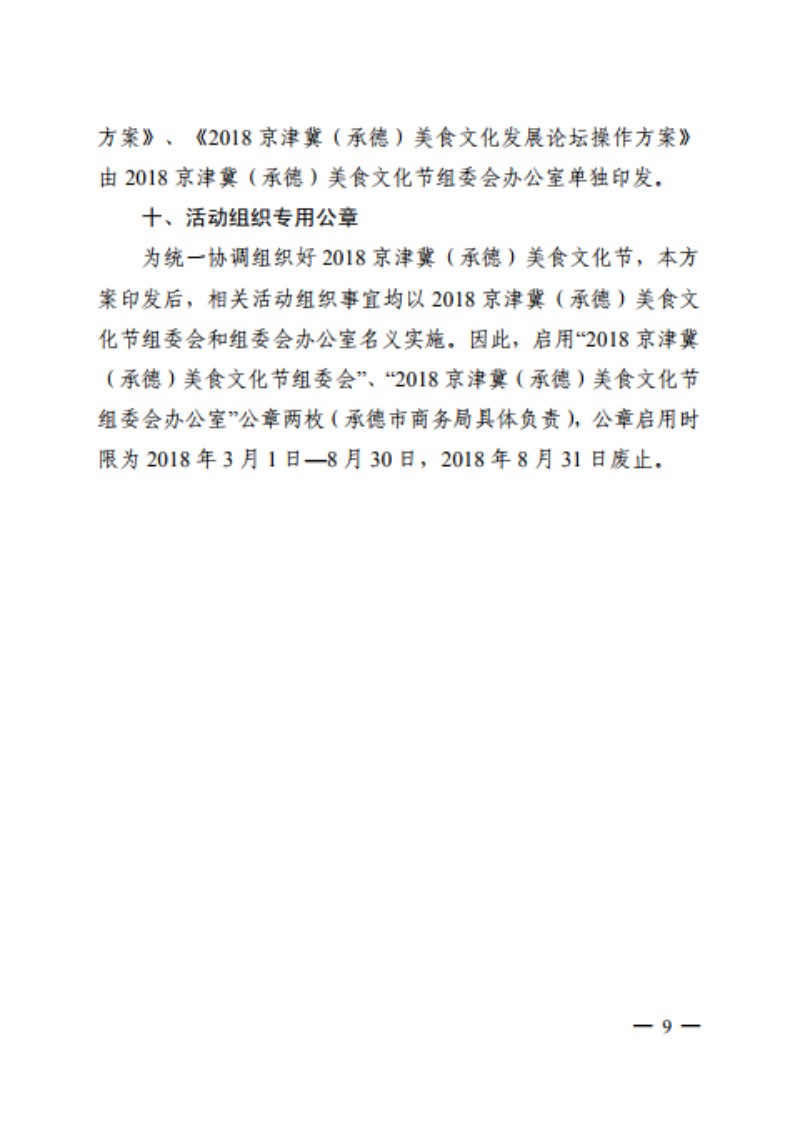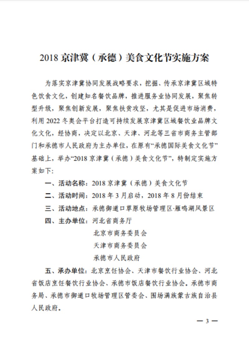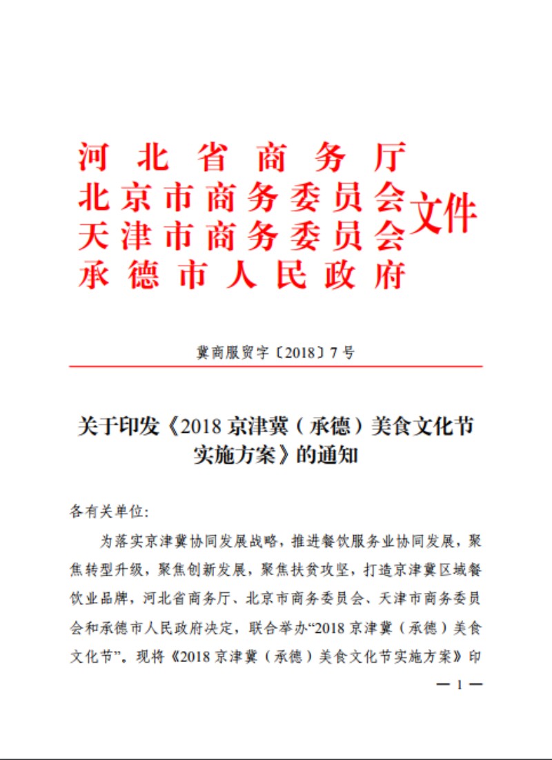 关于印发《2018 京津冀(承德)美食文化节》的通知