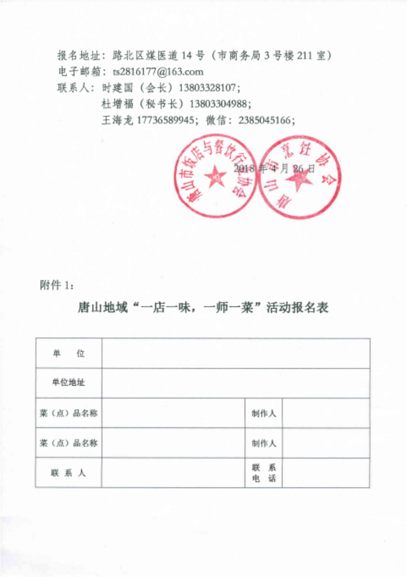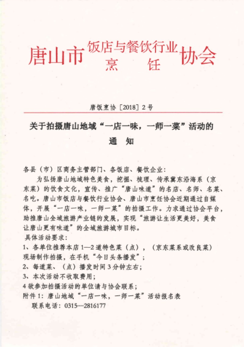 关于拍摄唐山地域,一店一味,一师一菜,活动的通知