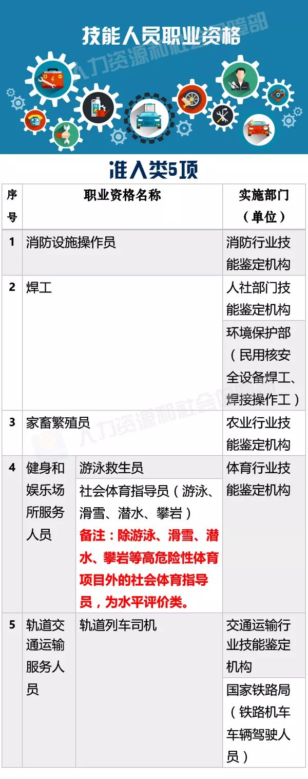 根据《国家职业资格目录》,技能人员职业资格共计81项,其中准入类5项,水平评价类76项。