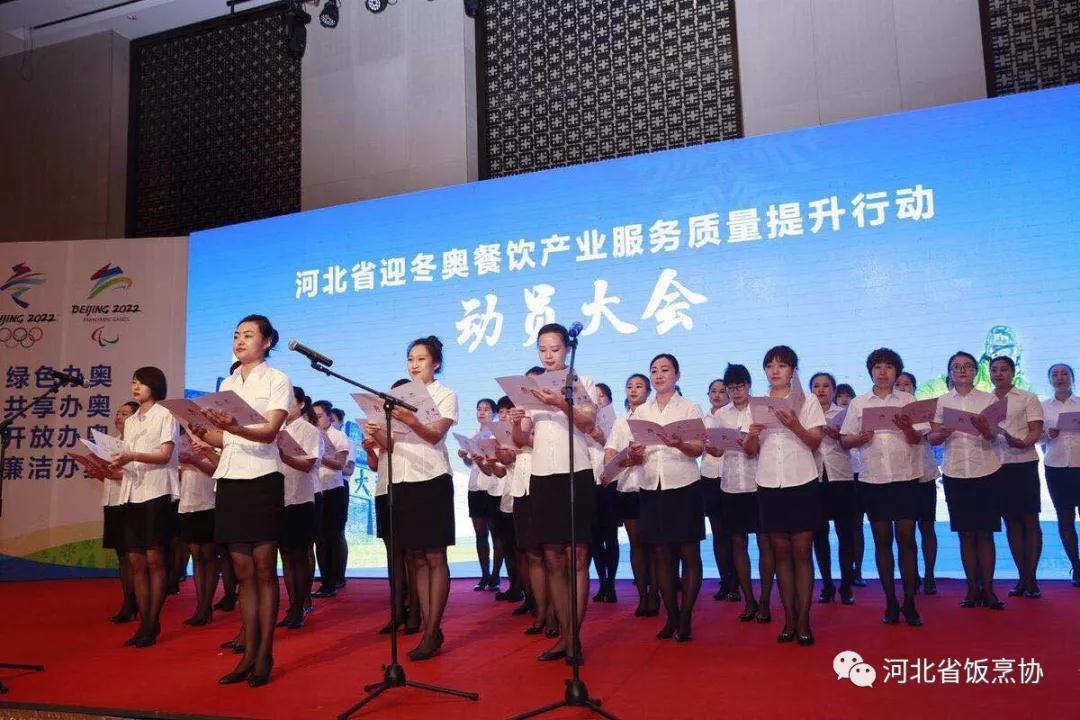 现场,参与赛事服务企业的厨师代表、服务员代表、冬奥赛会服务专家代表分别进行表态宣誓,代表们承诺:以习近平新时代中国特色社会主义思想为引领,牢固树立创新、协调、绿色、开放、共享发展理念,坚决执行绿色办奥、共享办奥、开放办奥、廉洁办奥方针,坚定精彩、非凡、卓越目标,遵守宪法和法律,恪尽职守、廉洁奉公,严格服务标准,严守商业秘密,发扬工匠精神,塑造河北赛会服务品牌,不负党和政府的重托,为扎扎实实筹办好2022年冬奥会贡献力量。