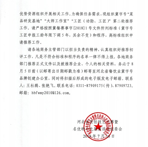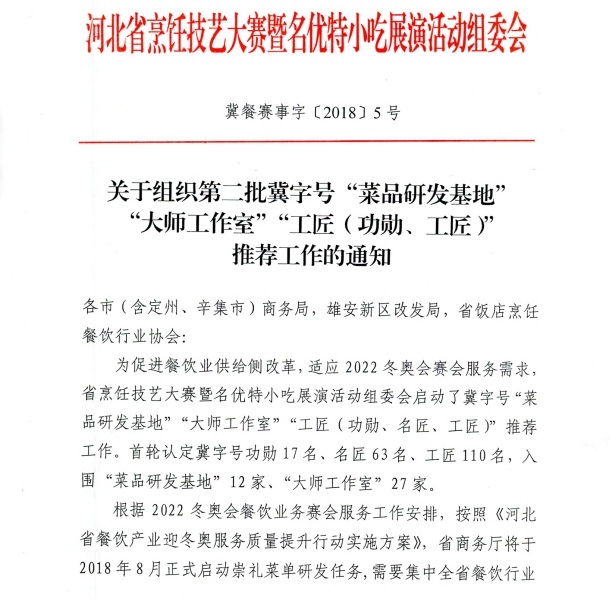 河北烹饪技艺大赛暨名优特小吃展演活动组委会通知
