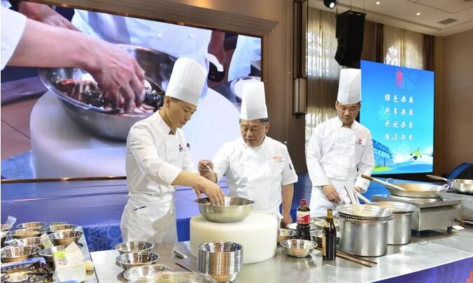 在现场实操演示环节中,邀请中国烹饪大师孙晓春、梁连起、何宝良、王会桐、徐仰前、韩会堂等进行现场点评指导,指出菜品研发存在的亮点和不足,给参加展示的研发大师和参会厨师以指导。