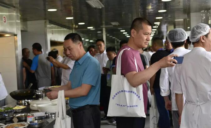 与会人员现场参观了鸿宴饭庄的厨房,这是我省目前唯一一个具有观摩通道的厨房,同时参观了基地菜品研发工作室,通过现场观摩学习,大家对鸿宴饭庄厨房管理的规范化管理和干净整洁的工作环境给予高度的评价。