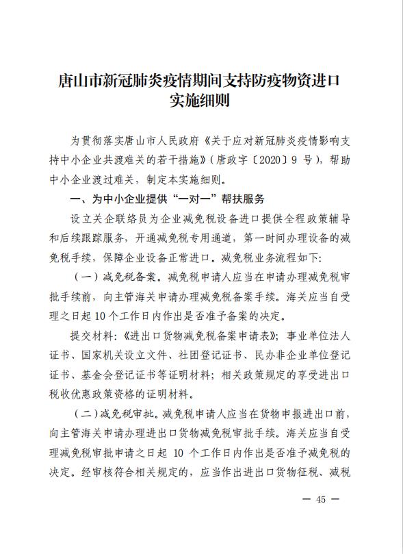 唐山市一港双城办公室关于疫情防控惠企优惠政策,企业有需要政府协调解决的亊,可通过协会上报市政府。