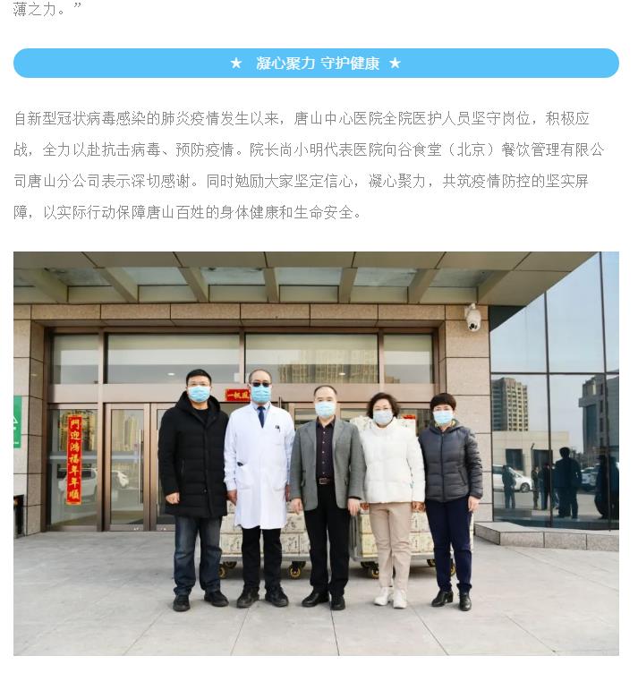 慰问前线献爱心 携手共进抗疫情 —唐山谷食堂慰问我院抗疫前线医护人员