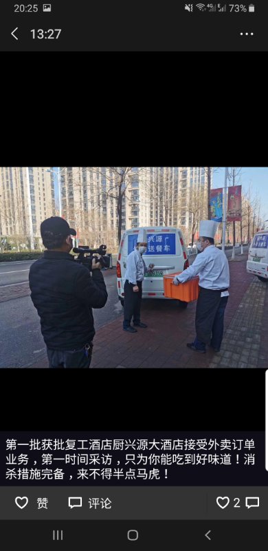 第一批复工酒店厨兴源大酒店接受外卖订单业务