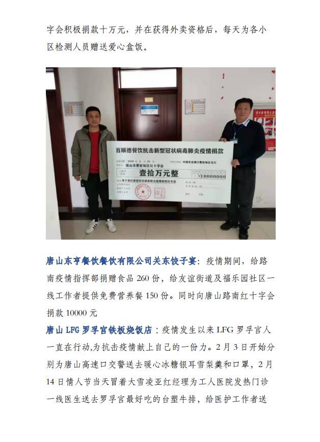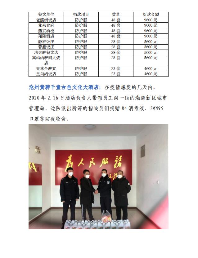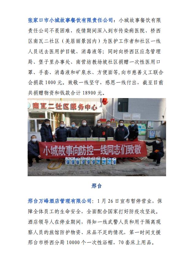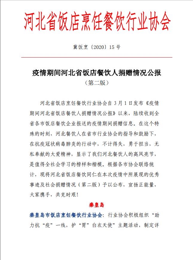 疫情期间河北省饭店餐饮人捐赠情况公报