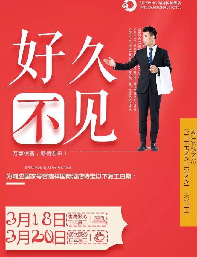 好久不见!万事俱备静待君来。瑞祥国际酒店正式复工啦