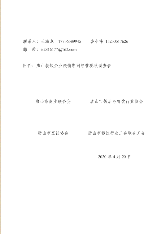 唐商协字[2020]2关于填写唐山餐饮企业疫情期间经营现状