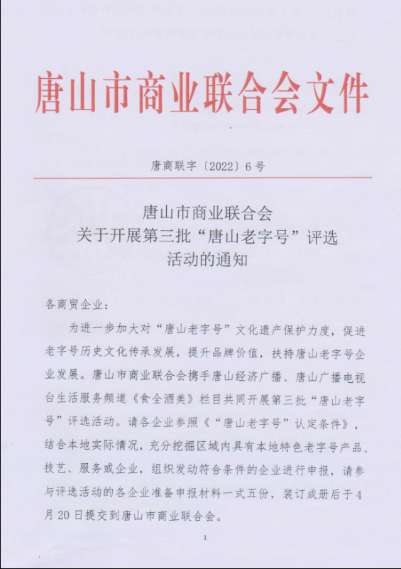 “唐山老字号”评选又开始了!新一批评定工作通知发布