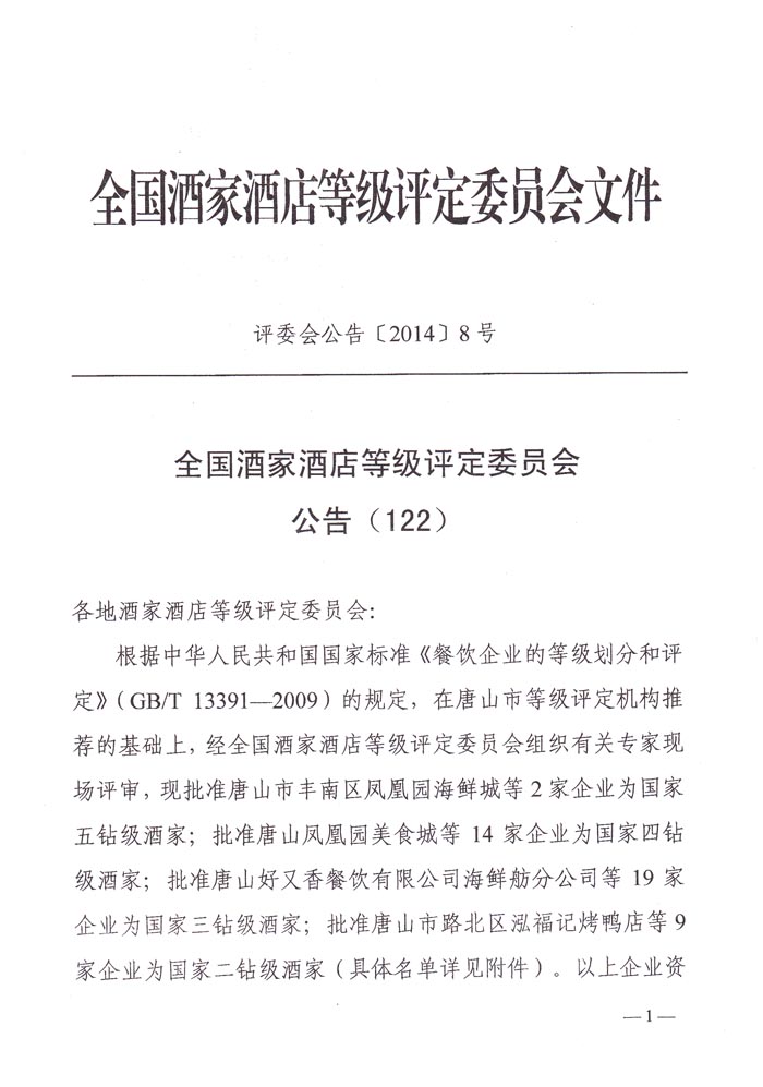 全国酒家酒店等级评定委员会文件