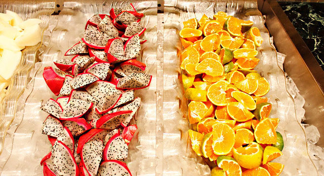 沙拉、水果 : 西瓜、圣女果、梨、葡萄、火龙果、苹果等