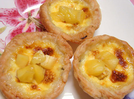 原料: 挞皮数个、安佳淡奶油75克 、纯牛奶70克 、炼乳7克 、绵白糖30克 、蛋黄2个、低筋粉7克 、 芒果数个。(图文)