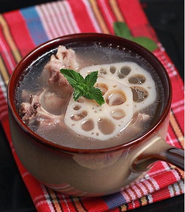 1. 将骨头洗干净,加入汤锅中,加入大半锅的清水,加入葱姜料酒,大火烧开,撇去浮沫; 2. 加入莲藕片,改小火慢炖1个半小时,加入盐调味即可。(图文)