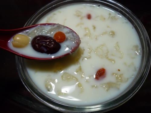 主料 银耳50G 红枣50G 枸杞10G 莲子60G 蛋奶600G 百合30G 鸽蛋100G(图文)