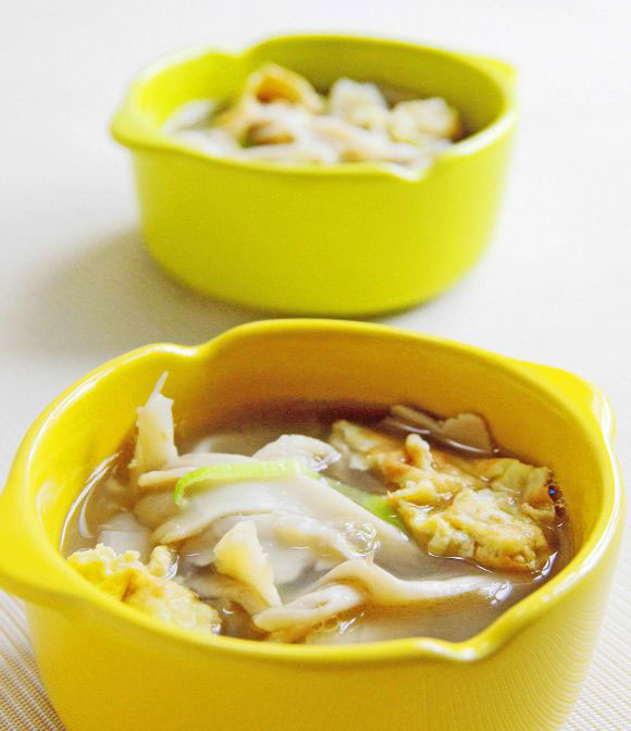 今天我用采摘来的栗蘑做了个鸡蛋汤,我跟邻居学的用摊成蛋饼的鸡蛋做汤,加入开水,汤色白白的特有食欲,不过我今天用的铸铁锅所以汤颜色发黑了,郁闷的很,下次还是用砂锅或是不锈钢锅做汤了(图文)