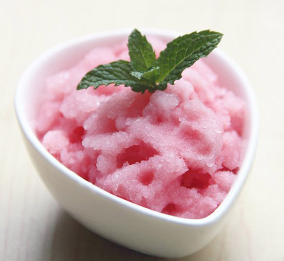 西瓜是夏季主要的消暑果品,果瓤脆嫩,味甜多汁含有丰富的矿物盐和多种维生素,用西瓜做沙冰,淡淡西瓜香加上冰沙的清凉口感,晶莹的粉红色,状如雪泥,吃上一口会爽到心里。(图文)