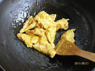 剩下的一个鸡蛋与水淀粉、面粉调匀成糊。