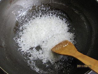 锅中放入水、糖开始煮。