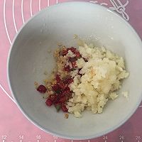 5.锅中热油,油热倒入三分之一蒜末炒至金黄捞出沥干油份,加入剩余的三分之二蒜末和辣椒段适量盐搅匀