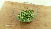 1.黄瓜切开、去芯、再切丁,放半勺盐,拌匀,腌制十分钟。