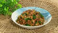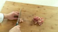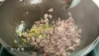 2.猪瘦肉切丁,姜切末,葱白切葱花。