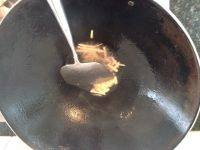 4.等姜丝微微变色是放入瘦肉,炒至肉色微微发白时放入盐、糖、酱油、少许醋,这里的各种作料量可以按个人口味调整分量哦,翻炒瘦肉上色后加入两小勺水,不要多哦,防止粘锅的