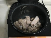 5.选择电饭煲柴火饭功能。(其实就是随便找个程序就可以,排骨不难熟,一般的程序均可。用电饭煲不熬水,才能用这个办法,如果你用电饭锅,密封不好,就不能用哦)