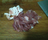 4.前腿肉洗净,肥瘦分开切长片