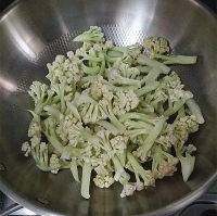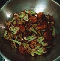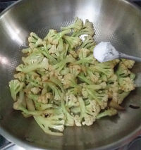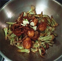 12.洗锅倒油爆香葱蒜后倒入有机花菜
