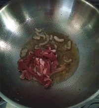 8.留少许干净底油入肥肉片,出油后放至瘦肉片煸炒
