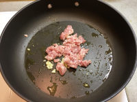 5.热锅放适量油,放入蒜末爆香