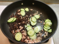 9.放入小黄瓜拌炒