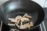 3.油锅烧热,将午餐肉到进去,稍微煎炒下