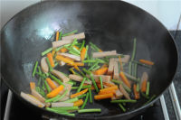 4.将烫好的蔬菜丝到进去