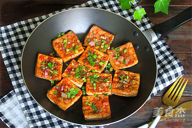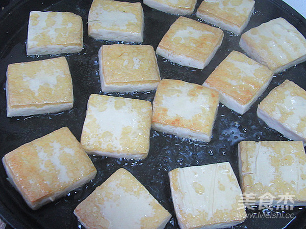 将电饼铛或平底锅预热,放入臭豆腐煎至两面金黄