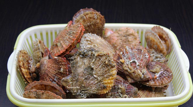 关于扇贝的处理方式,新鲜扇贝用清水养一个晚上,再清洗泥沙。贝壳可以用一次性牙刷刷洗干净。再用小刀,将贝壳一分为二,去内脏,洗净,留肉即可。