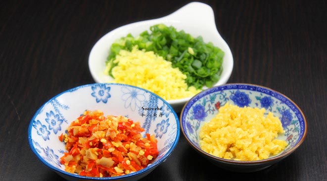 准备剁辣椒、蒜打碎、生姜切碎末、葱切好;