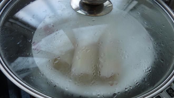 沸水入锅,蒸8分钟,关火