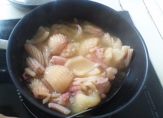 水烧开后,将鱿鱼汆烫,打卷即可捞出