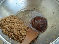 把肉末扒拉到一边,用锅里的油小火炒甜面酱。