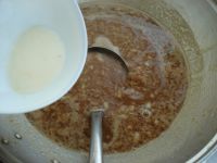 烹入少许白酒,醋翻炒,去除腥味儿后放入五香粉,葱末,姜末继续煸炒。