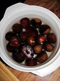 栗子全部划好用清水浸泡10分钟。