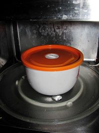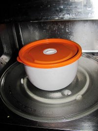 保鲜盒放入微波炉高火3分钟。