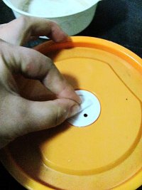 然后把栗子放入微波保鲜盒中,把微波孔打开