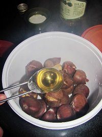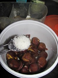 盖上盖子把保鲜盒摇晃一下,让栗子和调料裹均匀。